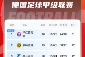 连场刹车!德甲积分榜:拜仁近2轮1平1负,先赛仍9分领跑